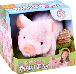 Legetøjet bevæger sig, vifter med halen og grynter, hvilket giver barnet timevis af sjov og interaktion.