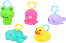 Sættet indeholder fem farvestrålende dyr, der bringer glæde og morskab under badet.