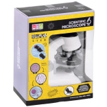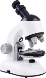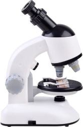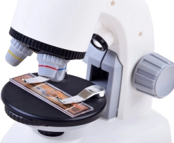 Dette bærbare mikroskop er et komplet startlaboratorium for børn. Takket være den robuste plastkonstruktion, enkel fokusbetjening og indbygget belysning kan man sikkert og bekvemt udforske detaljer, som ikke kan ses med det blotte øje.