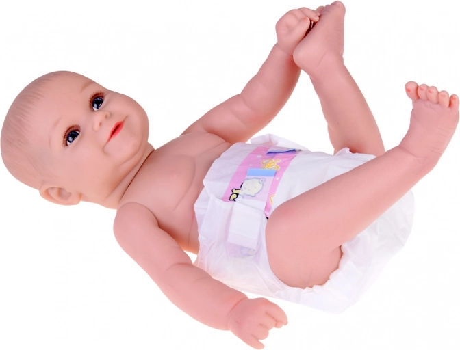 Den realistiske dukke dreng simulerer en rigtig nyfødt og er anatomisk korrekt. Hendes smilende ansigt giver autenticitet og vækker lyst til omsorg og leg. Dukken er lavet af materialer i høj kvalitet, har en blød krop, bevægelige lemmer og realistiske ansigtstræk.