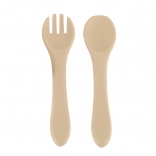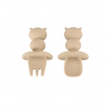 Dette beige silikone spisesæt gør det lettere for børn at lære at spise selv og giver forældrene roligere måltider. Sugekopper på tallerken og skål forhindrer væltning, kop med sugerør støtter selvstændig drikning, og hagesmæk med dyb lomme opfanger nedfaldne stykker.