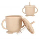 Silikonekop med sugerør og to håndtag støtter selvstændig drikning og mindsker risikoen for spild.