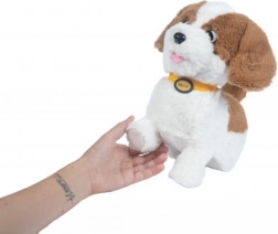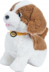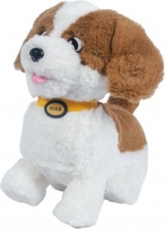 Den bløde brun-hvide pels og halsbåndet med navnet MAX gør hunden til den ideelle makker til både kram og sengetid.