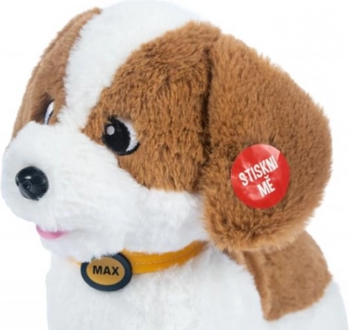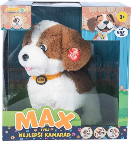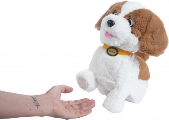 Den søde interaktive hund Max bliver den bedste ven for dine børn. Han kan sidde, gå, give pote, række tungen ud og gø. Han reagerer straks på kærtegn og berøring, er dejligt blød og ideel til både kram og leg.