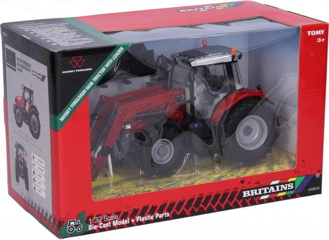 Modeltraktor med frontlæsser Massey Ferguson 6616, målestoksforhold 1:32, robust konstruktion, 21,5 cm.