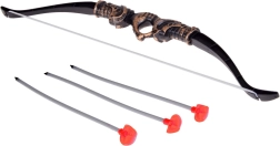En bue på 44 cm er ideel til at øve “bueskydning” med sikre pile på 24 cm, designet til børns leg. Et kogger på 13 x 9 cm fuldender det ridderlige udtryk.