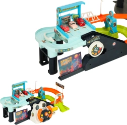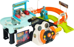 Sættet inkluderer et rat, der får børnene til at føle sig som om, de sidder bag rattet i en rigtig bil, med tre knapper til at aktivere lydeffekter som beriger legen. Rattet aktiverer også en af de to elevatorer, så bilerne kan komme til toppen af banen.