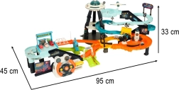 Det futuristiske UFO tårn er banens centrum, som lyser og afgiver lyde ved aktivering, hvilket tilføjer til rumskabets atmosfære. Dette sæt underholder ikke kun, men udvikler også børns motoriske færdigheder, koordination og forestillingsevne og bringer dem ind i en fascinerende verden fyldt med eventyr!