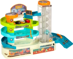 Børn kan følge, hvordan bilerne bevæger sig langs banen med hjælp fra den elektriske elevator og snørklede stier, der fremmer visuel udvikling.