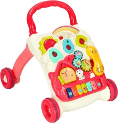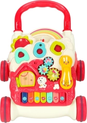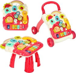 Den universelle 4-i-1 hjælper til de mindste kombinerer et skubbe-gåstativ, et læringsbord, et aktivitets-/manipulationspanel og en sjov seng-/krybbespilslegetøj. Farverige elementer, et lille klaver, tandhjul og andre interaktive funktioner støtter motorik, koordinering og de første skridt. Den stabile konstruktion, behagelige højde og nemme omstilling uden værktøj gør dette sæt til et ideelt valg til legende læring hver dag.