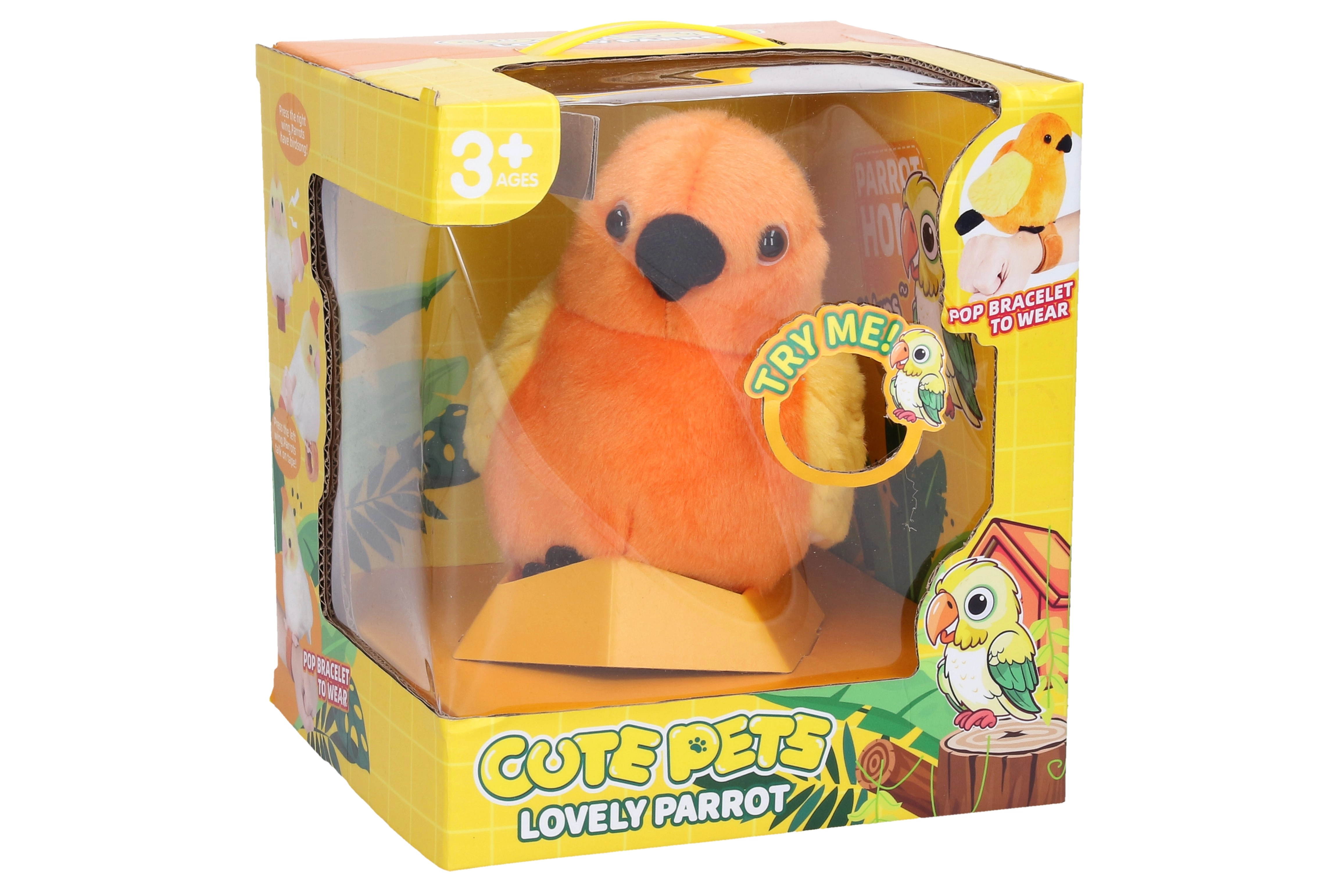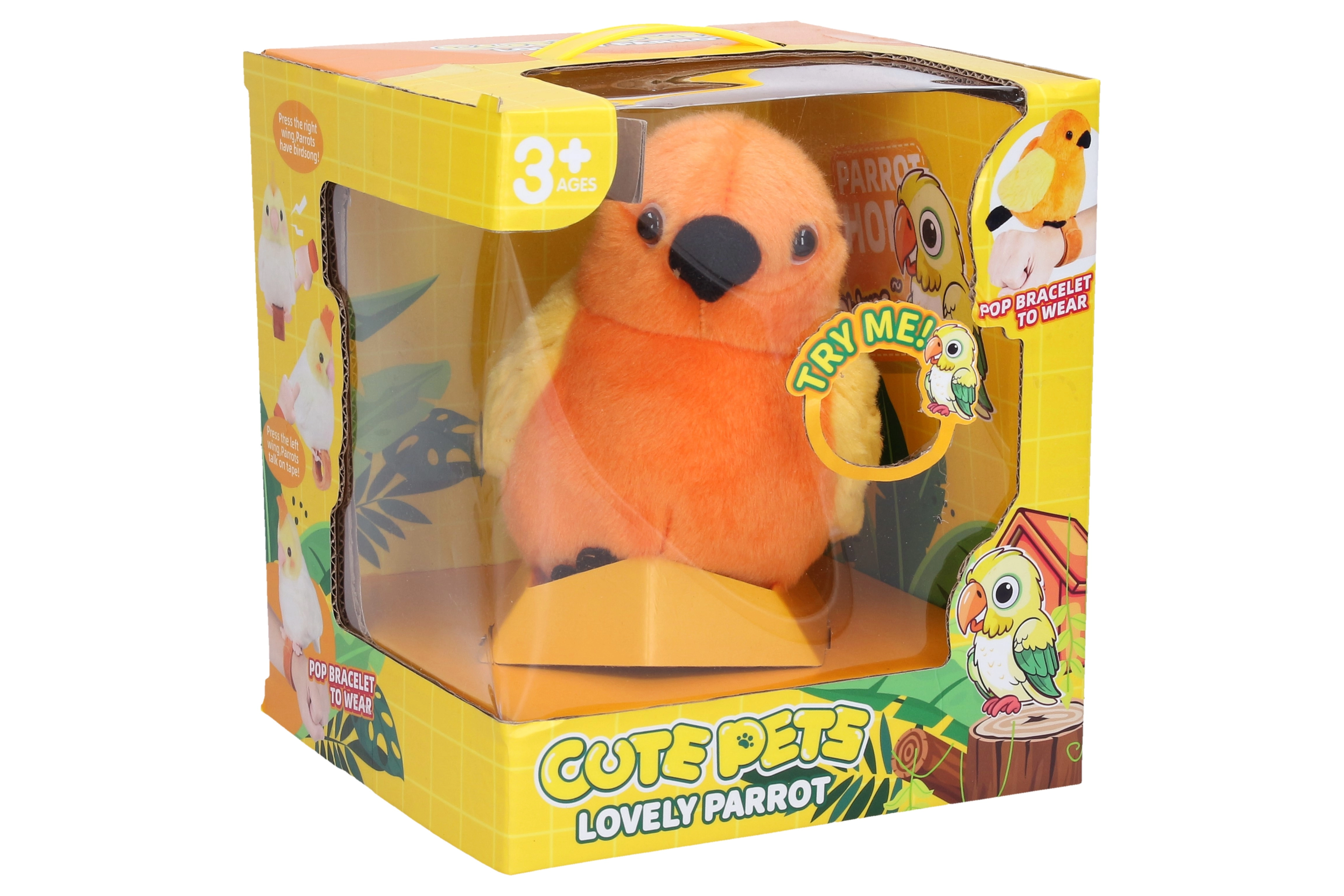 Sjov interaktiv fugl, der sidder på hånden og gentager dine ord. Den tilbyder lydeffekter, enkel betjening med knapper på vingerne og er ideel til børn fra 3 år. 3× AG13-batterier er inkluderet.