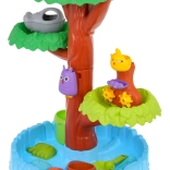 Hæld vand i træets øverste etager og se det løbe ned gennem de enkelte niveauer, sætte tandhjulene i gang og ende i den nederste beholder. Takket være klare farver og smart design udvikler børn naturligt finmotorik, logik og fantasi – hvad enten de leger hjemme i haven eller på stranden.