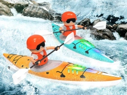 Dette kajak med underlys og realistisk roerfigur giver fascinerende og interaktivt sjov for børn i alle aldre. Den plastiske konstruktion og vandafvisende materialer gør det ideelt til leg både indendørs og udendørs.