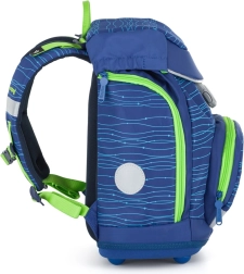 Sættet OXY Sherpy Blue er et pålideligt valg til børn i 1.–3. klasse. Hovedrummet med snørelukning og magnetlukning gør det nemt at åbne med én hånd, og den indvendige opdeler holder styr på bøger og hæfter. Forlomme til madpakke og sidlommer med lynlås giver ekstra overskuelig opbevaring.