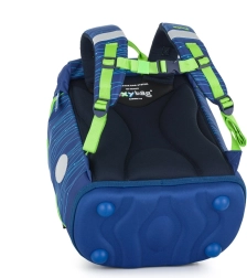 Ergonomien er i fokus: ergonomisk formet rygpanel (længde 33 cm), polstrede skulderstropper og justerbar brystrem understøtter korrekt kropsholdning. Den faste bund med plastfødder forhindrer væltning, og reflekselementer øger sikkerheden på vej til og fra skole. Takket være udskiftelige badges med velcro kan børnene nemt tilpasse rygsækkens udseende.