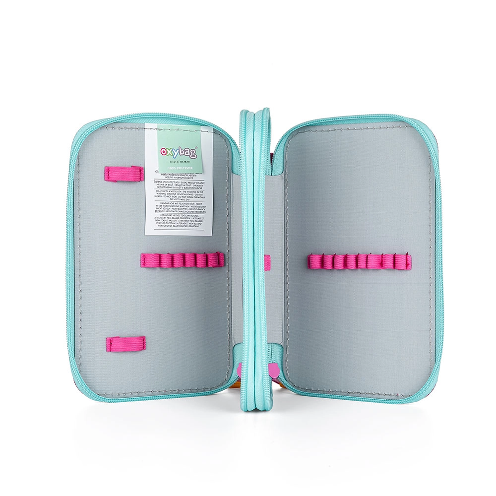 Takket være den gennemtænkte indvendige inddeling med 25 løkker kan du nemt organisere blyanter, farveblyanter, viskelæder og lineal. De store trækvedhæng på lynlåsen gør det let at åbne også for mindre børn, og den gennemsigtige skemalomme hjælper med at organisere skoleugen.