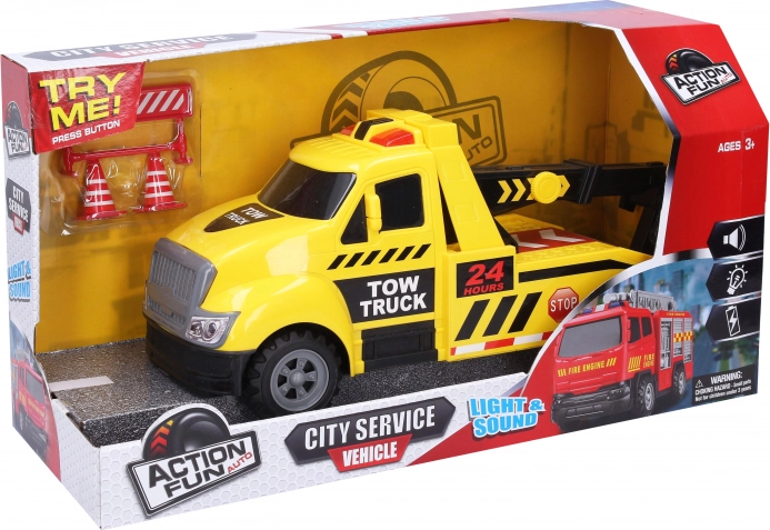 Flyt bilen, der er parkeret forkert, ved hjælp af den inerti-drevne bugserbil, som er udstyret med lys- og lydeffekter. En fantastisk legetøj, der vil glæde enhver lille chauffør fra 3 år.