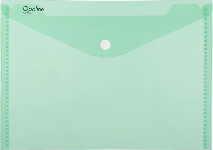 Opaline-kuverten beskytter dokumenter mod krøl og støv. Det holdbare polypropylen på 180 µm bevarer formen, og den pålidelige trykknap forhindrer utilsigtet åbning. A4-format passer nemt i taske, mappe og ringbind.