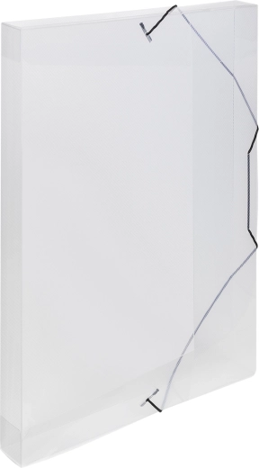 Praktisk arkiveringsboks til dokumenter i A4-format med sikringselastik og holdbart polypropylen-materiale.