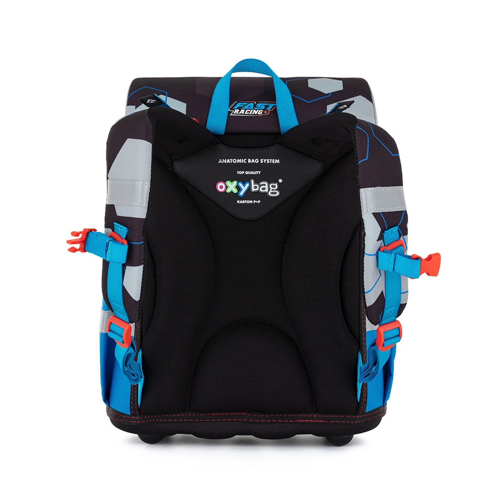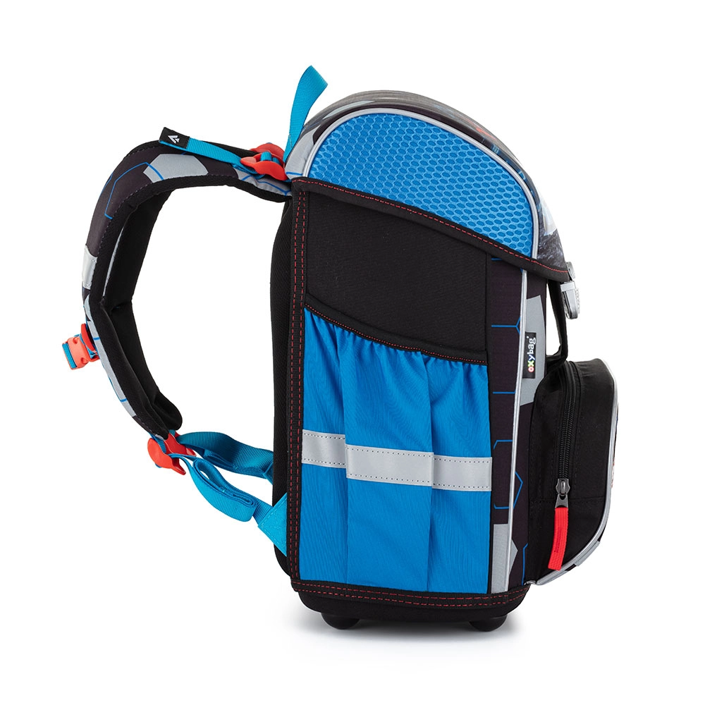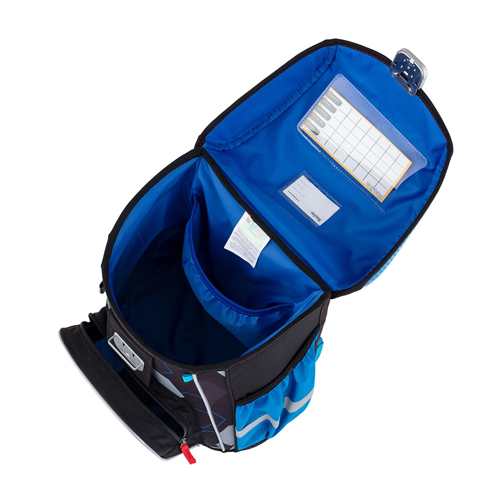 Skoleaktetaske fra Premium-serien er anatomisk udformet og sikrer korrekt placering på ryggen. Den forstærkede ryg og indvendige afstivning holder rygsækkens form stabil. Polstringen er lavet af et behageligt, åndbart materiale, og de brede, polstrede stropper er designet til at slutte tæt og fordele vægten jævnt over barnets skuldre. Aktetasken består af ét rummeligt rum, hvor alle skoleartikler til børn i 1. og 2. klasse nemt kan være. Bunden af rygsækken er af et robust materiale, som beskytter indholdet mod at vælte og spilde. Lukningen er med sikkerhedslås. Den forreste lille lomme er beregnet til madpakke, og der er en række reflekselementer, som gør tasken mere synlig. Volumen: 28 l. Bæreevne: 8 kg.