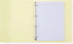 Stilfuld gul A4-notesbog med PVC-omslag og fire-ringet mekanisme, ideel til moderne studerende og professionelle. Hold dine noter organiserede og lige ved hånden.