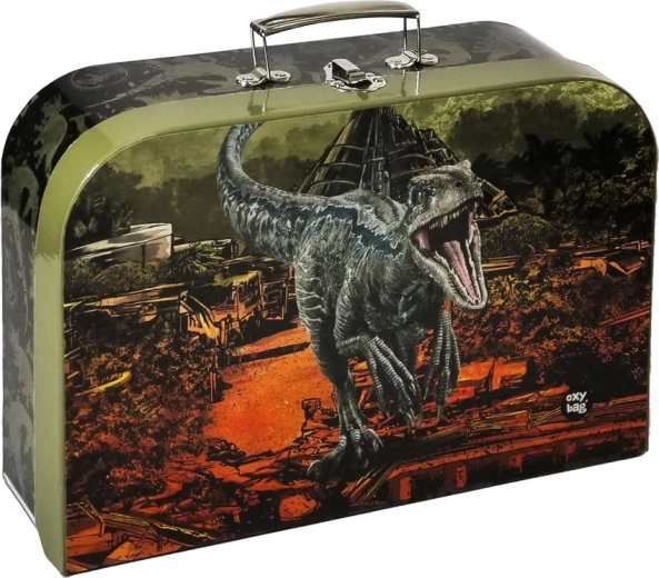 Praktisk og let børnekuffert med dinosaurmotiv vil glæde enhver lille skaber. Den robuste konstruktion i lamineret karton belagt med trykt papir beskytter indholdet, og det attraktive JURASSIC WORLD-motiv fanger opmærksomheden med det samme.