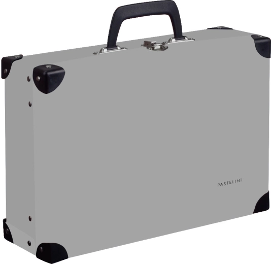 Den grå PASTELINI-kuffert i laminat er robust, let og nem at vedligeholde. Perfekt til skole, fritidsaktiviteter og hjemmet – til tegnegrej, småt legetøj eller dokumenter i A4-format. Den metal-lås holder indholdet sikkert, plastikhåndtaget sikrer behagelig bæring, og de forstærkede hjørner beskytter kanterne mod slitage.