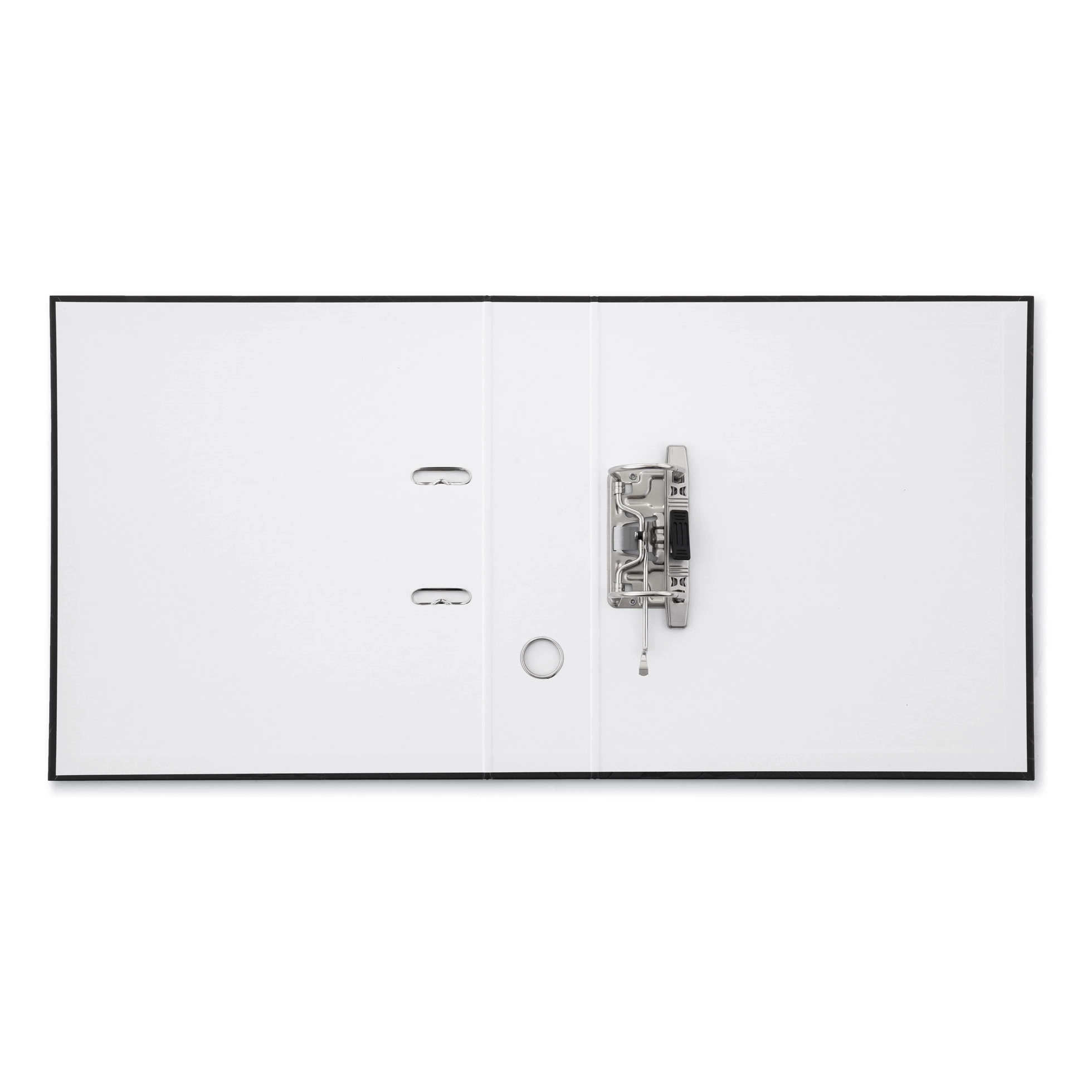 Takket være ryglommen kan du nemt indsætte og udskifte etiketten, fingerhullet gør det lettere at håndtere ordneren på hylden, og de forreste låseringe forhindrer utilsigtet åbning. Det elegante sorte design passer ind i enhver arbejdsplads.