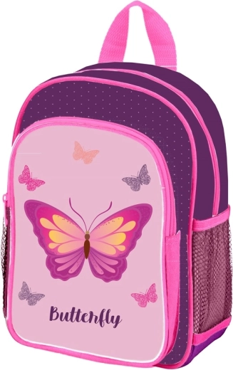 Mindre rygsæk velegnet til børn i alderen 3 til 6 år. Perfekt til fritidsaktiviteter med ét stort rum, en mindre lomme til madpakke og side lommer til drikkeflaske.