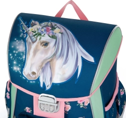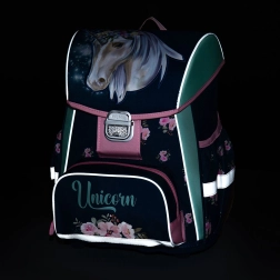 Anatomisk formet skole rygsæk Unicorn Premium er ideel til børn i 1. og 2. klasse. Forstærket ryg, brede polstrede stropper og rummelige rum sikrer komfort og organisering.