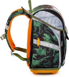 Den stilfulde skole-rygsæk Premium Light i dinosaur-tema begejstrer børn med den markante T‑Rex-grafik og tiltaler forældre med topklasse ergonomi. Den lette konstruktion med åndbar rygpolstring og brede, bløde stropper giver behagelig og sund bæring hver dag. Kompressions- og bryststropper hjælper med at fordele vægten og holde rygsækken stabil på ryggen.
