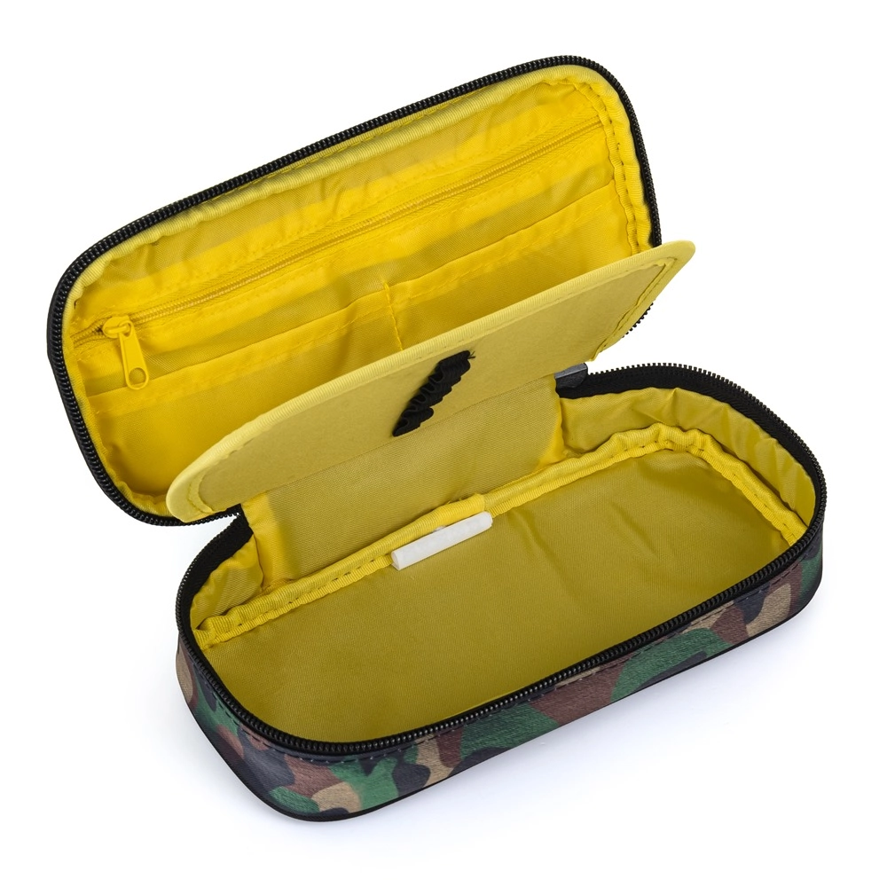 Skoleetui med robuste lynlåse, lille lynlåslomme og en klap med faste stropper på begge sider. Under klappen er der plads til frit opbevaring af skriveredskaber eller andre småting. Velegnet til elever i udskolingen og ældre studerende.
