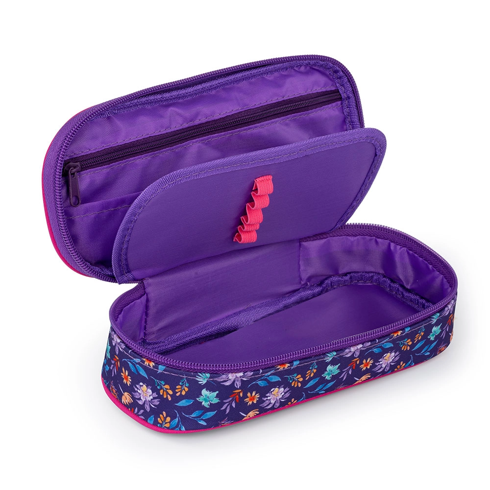 Vælg et praktisk og stilfuldt etui til opbevaring af alle nødvendige skoleartikler. Dette etui er udstyret med solide lynlåse og en klap med stropper, som muliggør effektiv organisering: