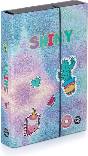 Boks til A5 hæfter Jumbo OXY Style Mini Shiny er en uundværlig del af enhver skoleelevs udstyr. Den er lavet af holdbart lamineret materiale, der beskytter indholdet mod skader. Med elastiklukningen er det sikret, at hæfter og papirer ikke falder ud. Kompakte mål og en rygbredde på 4 cm gør det let at opbevare det i skoletasken.