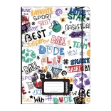 De originale omslagsmotiver som camo, dovendyr, graffiti, blomster og hajer giver notesbogen et personligt udtryk. Omslagene er lavet af slidstærkt materiale, hvilket sikrer styrke og holdbarhed. Perfekt til nye idéer eller skoleoptegnelser.