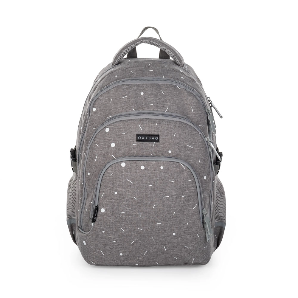 Oxy Scooler er en rygsæk med tre rum til både elever og studerende, med sidelomme til flaske, organizer, lille indvendig lomme og også en laptoplomme op til 15''. Justerbare skulderstropper og brystrem sammen med et anatomisk formet, åndbart rygsystem giver maksimal bærekomfort. Naturligvis med refleksdetaljer.