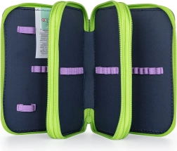 Penalhuset er udstyret med 40 elastiske stropper til blyanter, kuglepenne, farveblyanter og små skoleartikler. Takket være den solide lynlås med store vedhæng er det nemt at åbne og lukke, og det gennemsigtige rum til ugeplanen gør det lettere at organisere skoleugen.