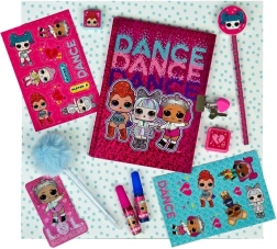 Sættet med LOL Surprise tema er den perfekte måde at tilføje lidt magi til din daglige rutine. Det indeholder en dagbog med lås, to nøgler, en blyant, to glitterlim, klistermærker, stempler, en underlag og en kuglepen.