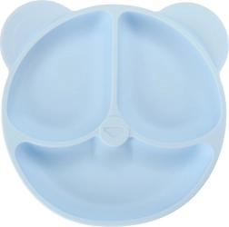 Tallerken i fødevaregodkendt silikone med flere rum giver overskuelig servering og støtter selvstændig spisning. Den legesyge bjørneform fanger børnenes interesse.