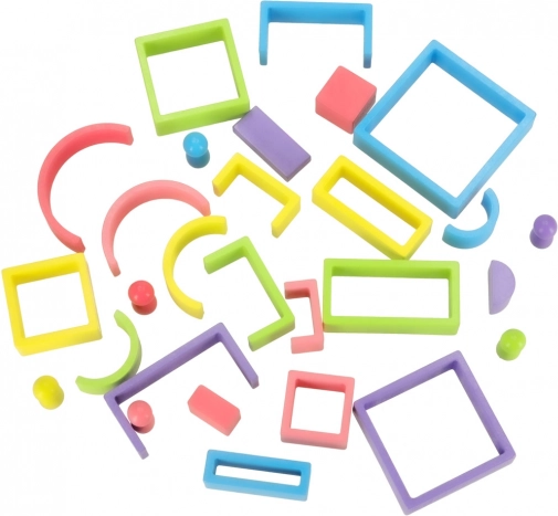 Håndtering af delene træner greb, præcision og hånd–øje-koordination. Glatte kanter og sikre farver sikrer behagelig og tryg leg.