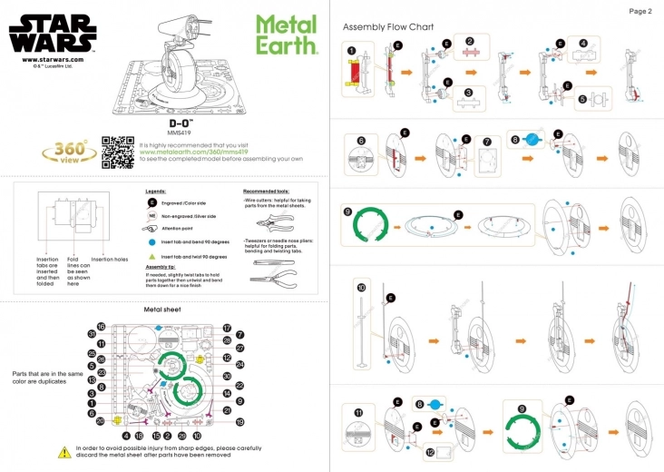 Oplev glæden ved præcisionsarbejde i metal og forvandl en flad stålplade til en detaljeret miniatur af den populære droid D-O. METAL EARTH-modellen udmærker sig ved autentisk udseende, metalkonstruktion og fin lasergravering, som fremhæver hver linje. Ideel som elegant tilbehør på skrivebordet, i montren eller som gave til fans af STAR WARS.