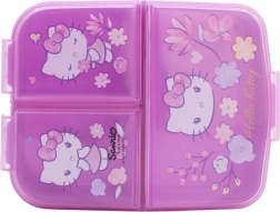 Den praktiske multiboks til snack med officiel Hello Kitty-licens glæder børn med sit muntre design og forældre med sin smarte opdeling. Tre separate sektioner gør det muligt at pakke for eksempel frugt og grønt, en sandwich og en lille lækkerbid uden at smagene blandes. Takket være de kompakte mål passer den i skoletasken eller rygsækken, og de sikre klips holder indholdet på plads.