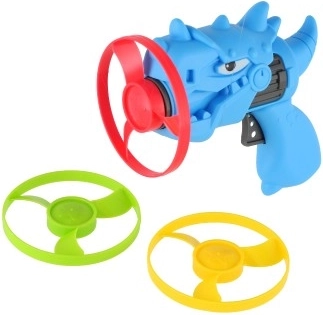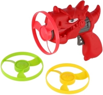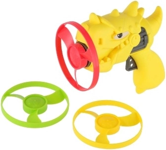 Giv børnene actionfyldt sjov med en dinosaur-affyringspistol og tre farvede propeller. Legetøjet er let, robust og nemt at betjene – sæt propellen i løbet, tryk/start, og se den stige hurtigt til vejrs. De klare farver gør propellerne lette at følge i luften.