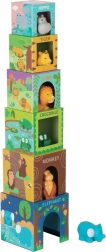 Dette sæt med 6 klodser giver hvert barn mulighed for at opdage eksotiske dyr fra fjerne lande. Takket være deres kompakthed og det udvalgte materiale bliver dyrene ideelle ledsagere på rejser og under badning (bemærk, pap må ikke komme i kontakt med vand!).