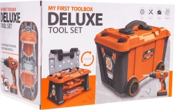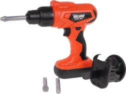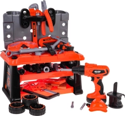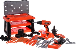 Veludstyret 2-i-1 værktøjssæt til små gør‑det‑selv‑folk fra 3 år. Af sættet kan du bygge et arbejdsbord, og når du er færdig med at lege, kan det forvandles til en værktøjskuffert, som er en del af sættet. Sættet indeholder 65 dele såsom værkstedsdele, værktøj, sav, skruetrækkere, batteridrevet boremaskine/skruetrækker, masser af skruer osv. Skruetrækkeren drives af 2 x 1,5 V AA-batterier, batterier medfølger ikke. Skruetrækkeren fungerer som en rigtig: skruer i, skruer ud, har også aftageligt batteri, 3 udskiftelige bits og en savklinge-bit. |