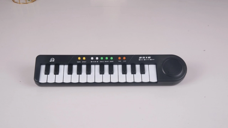 Støt børns kreativitet og rytmesans med det lette og bærbare klaver MQ-2518. Dette enkle, men funktionelle instrument er et godt valg til begyndere: det tilbyder valg af toner, otte rytmer og 24 demo-sange, som motiverer børn til at udforske musik.
