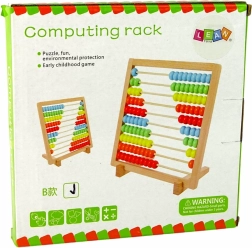 Den træbaserede skoleabacus er et ideelt redskab for førskolebørn og yngre skolebørn. Takket være 10 rækker og i alt 100 perler i fem farver (rød, gul, orange, grøn, blå) tilegner børn sig legende de grundlæggende matematiske færdigheder, og de udvikler logisk tænkning samt hånd–øje-koordination.