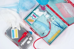 Lægetasken indeholder 27 dele sundhedsudstyr til realistisk rollespil.