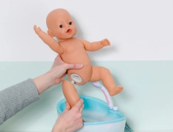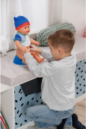 Dukken BABY born Jonas 43 cm er næsten som levende – han kan drikke af flasken, græde ægte tårer, lukke og åbne øjnene ved at dreje sutten, tisse i bleen og er også klar til et bad. Takket være de magiske tilbehør kan børn øve daglige plejeritualer og udvikle empati og finmotorik.
