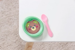 Ved kontakt med vand viser tallerkenen Jonas’ livret. På potten dukker der på magisk vis “tisse” og “prutte” op – en legende måde at lære hygiejnevanaer på.